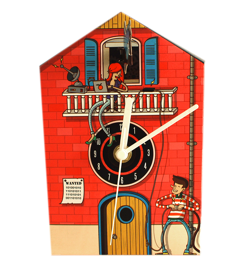 The entire art for this clock, has been in a first time drawn by hand, and then digitalized and colorized via Illustrator, only made by clean and nice vectorial shapes. The art could be reused for bigger applications in the future, while keeping the same details quality.
