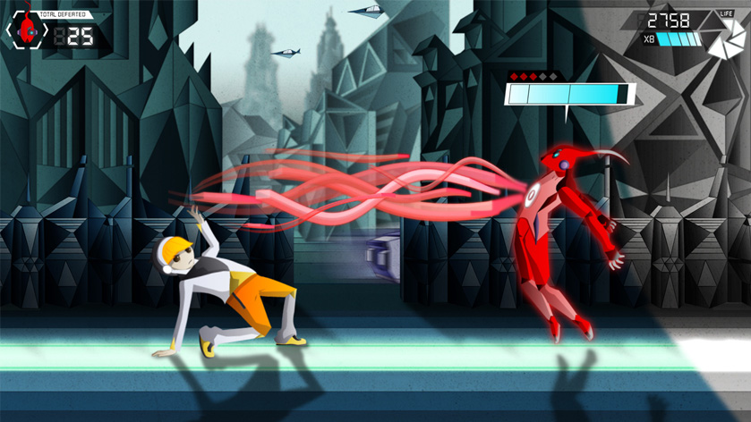This video game concept allows beginners who learn a musical instrument, to practice technical exercises at home, while having fun. Thereby making the learning process less boring. The player will use his own instrument (In this case a synthetizer) as main controller of the game. The project involves the concept art of the entire game, a promotional teaser, and 3 different gameplay and level designs.